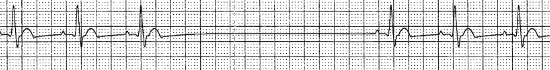 心臓の電気の通り道、心房と心室のつなぎ目の房室結節近辺が‘切れて’しまった状態です。脈が遅くなり、ふらつきや失神を起こすことがあります。Wenchbach型2度房室ブロックといわれる状態まではペースメーカ不要のことが多いですが、それ以上のブロックの場合はペースメーカーが必要になることがあります。
