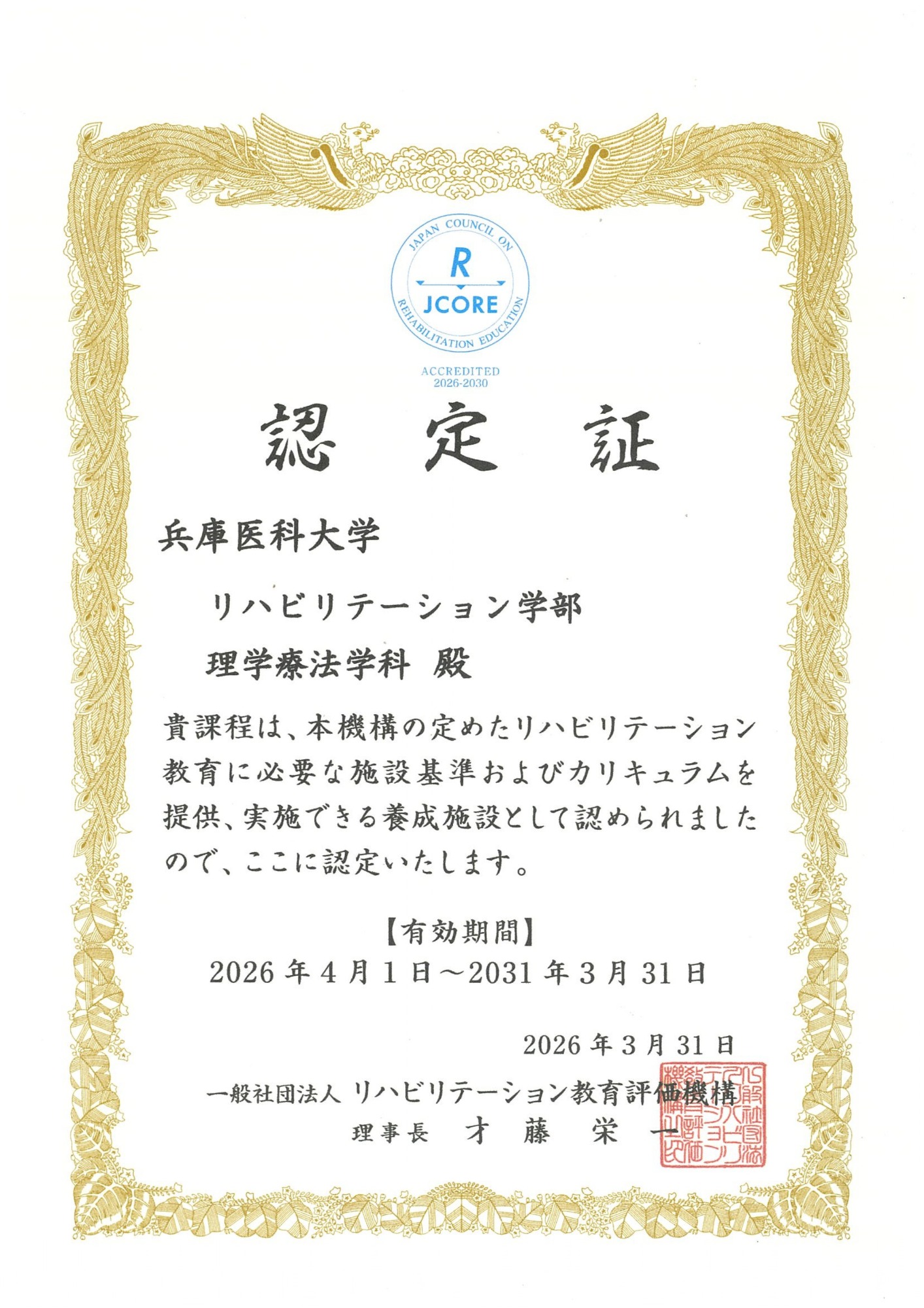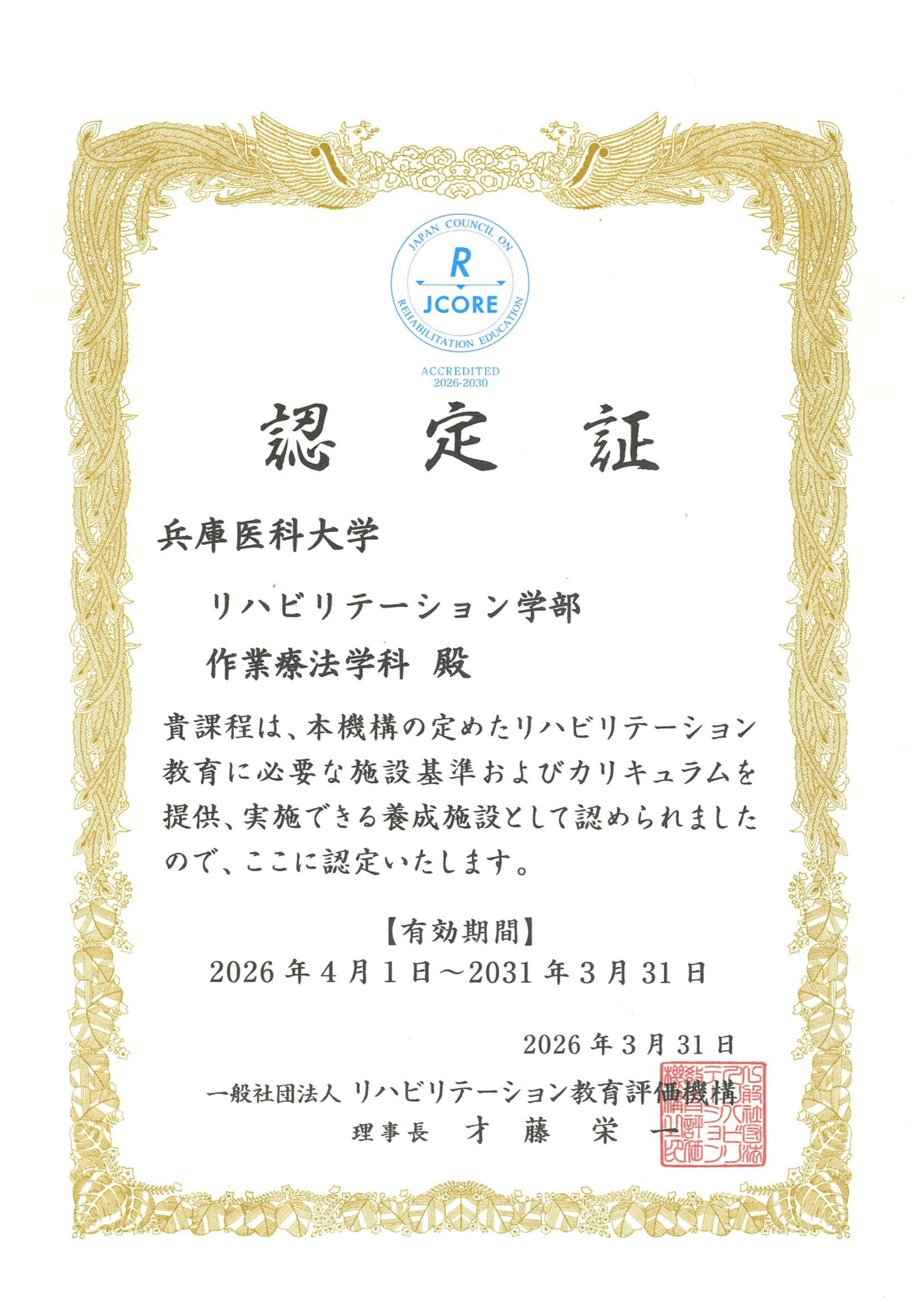 兵庫医科大学 リハビリテーション学部 理学療法学科および作業療法学科は、一般社団法人リハビリテーション教育評価機構により、リハビリテーション教育を十分に実施し得るための施設・設備、教員等の教育環境にて必要事項を網羅したカリキュラムを提供している養成施設として、認定されています。
