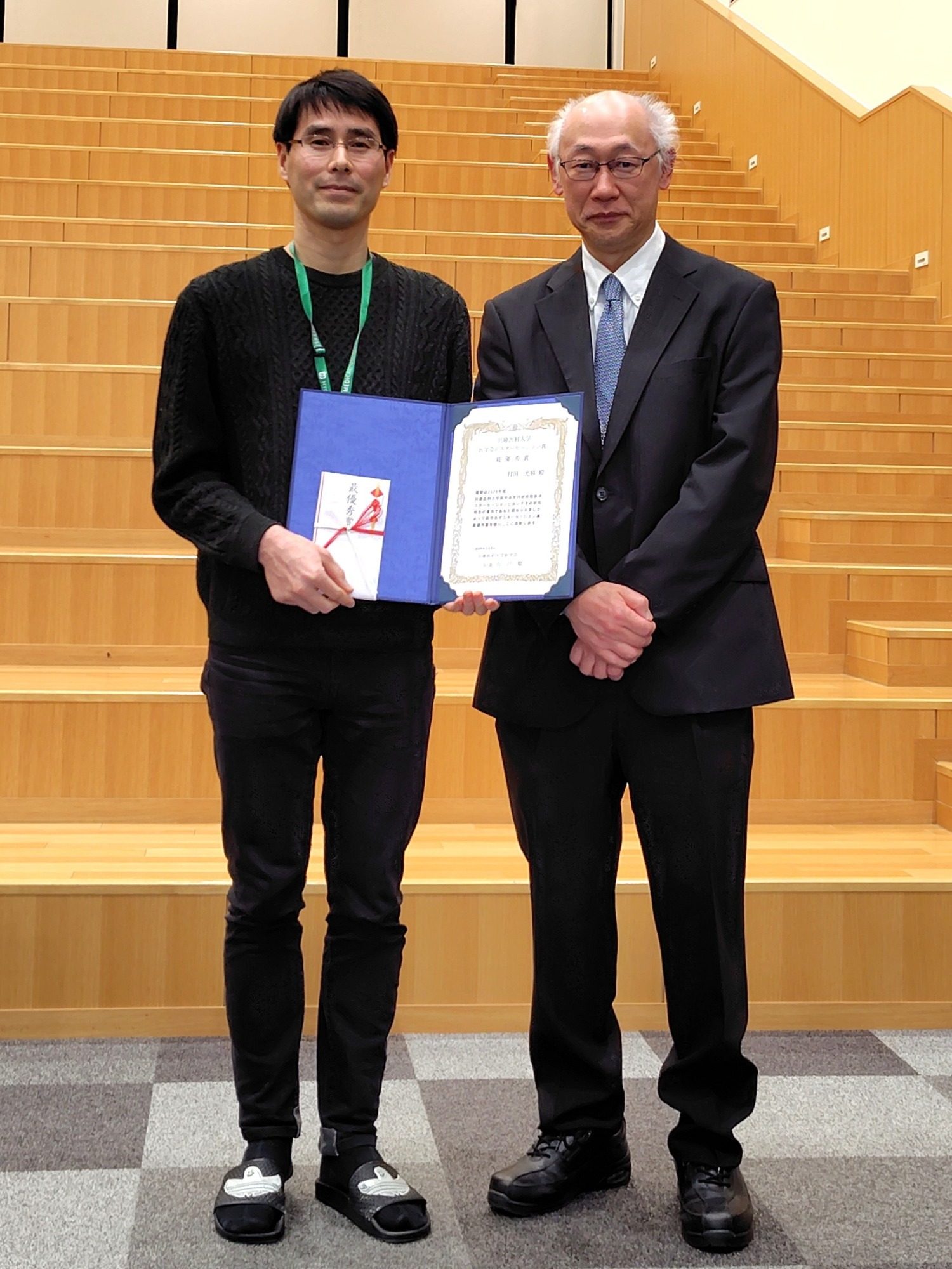 2025年3月5日に本学で「兵庫医科大学医学会学内研究発表ポスターセッション・交流会」を開催しました。本会は、研究者の日々の研究の奨励を目的として行われ、当日にポスター発表を行った若手研究者7名の中から特に優秀であった3名に対して会長の石戸聡から医学会ポスターセッション賞が授与されました。