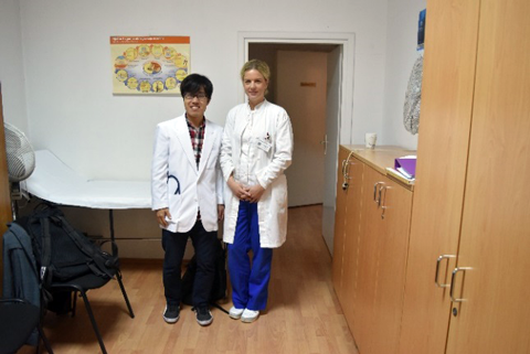 また、文化による違いも感じました。一般的な日本の病院であれば、病室のベッドはカーテンで仕切られていますが、現地の病院では全く仕切りが存在せず、プライベートな空間は全く無い状態でした。また、ベッドサイドには治療内容などを記した紙が置いてあり、正直誰でも見ることが可能な状態になっていました。すなわち、先生方の声も大きく、回診などの時にも隣の患者さんの情報が筒抜けで聞こえてくることになります。正直、日本では考えられない状況だと思いました。クロアチアの方々は、みなさんとてもフレンドリーでした。私が患者さんの血圧測定が上手く出来ない時には、聴診器の位置を動かしてくれたり、助けられた時もありました。また、「医学生の実習で来ました。」と言うと、診察なども嫌がらずに実習をさせて頂けました。そのようなクロアチアの方々のフレンドリーさや、海外の方特有のあまり人を気にしない精神というものが、ベッドの間の仕切りが無いことが受け入れられている理由なのではないかと感じました。