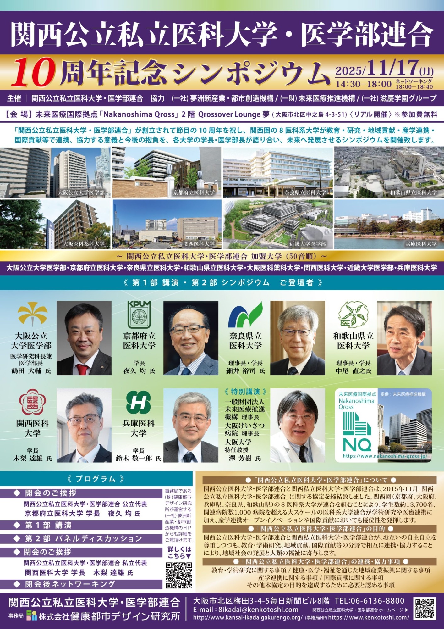 11月17日(月) 開催 「関西公立私立医科大学・医学部連合 10周年記念シンポジウム」