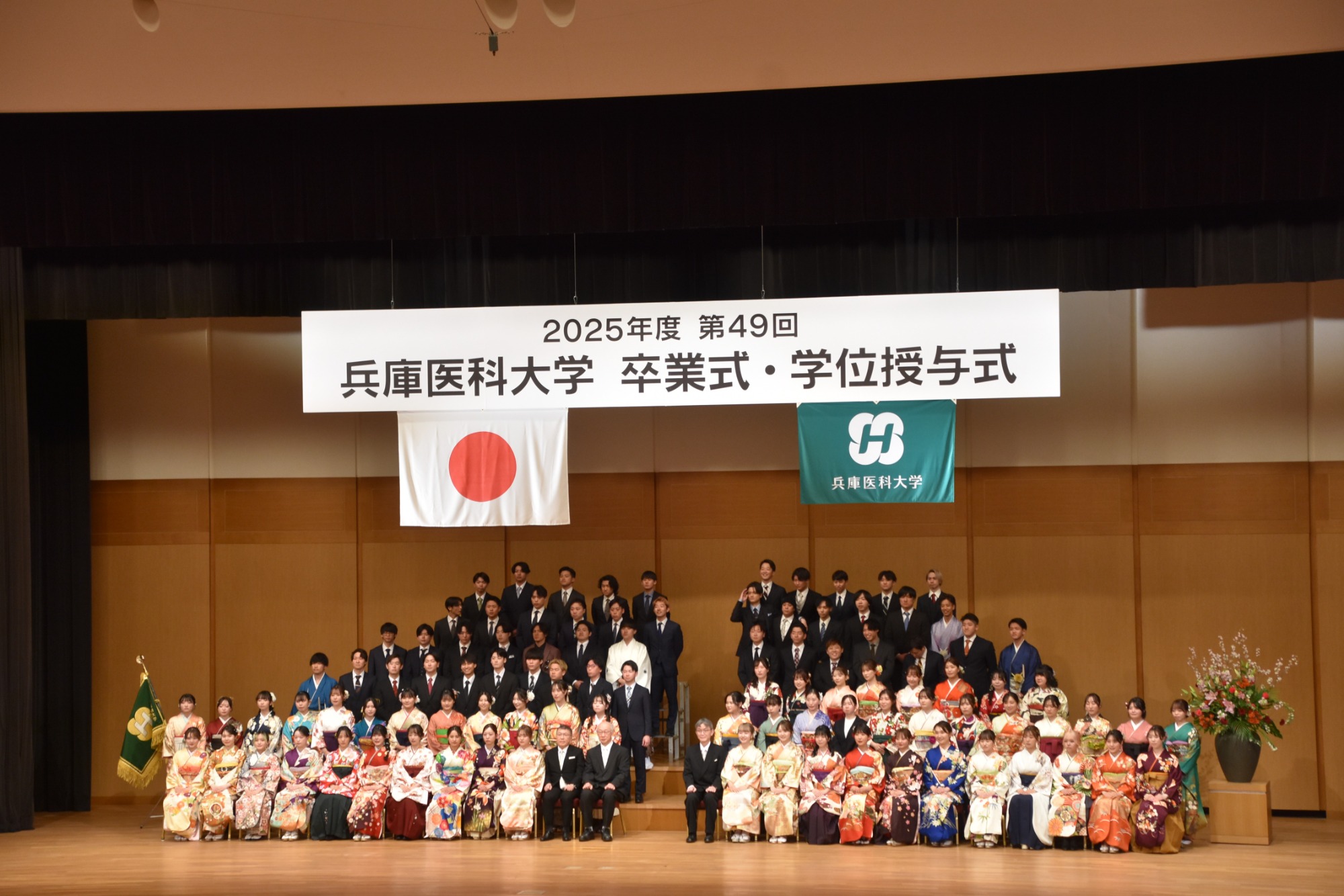 2026年3月12日、「2025年度兵庫医科大学 第49回卒業式・学位授与式」を神戸ポートピアホテルにて執り行いました。今回は、大学統合後初となる4学部合同での挙行であり、各学部の卒業生が一堂に会し、それぞれの学びを礎に新たな一歩を踏み出しました。卒業生たちは未来への期待と決意を胸に、次なる舞台へと旅立ちました。