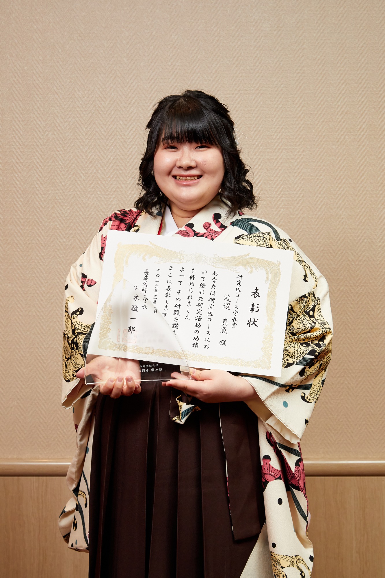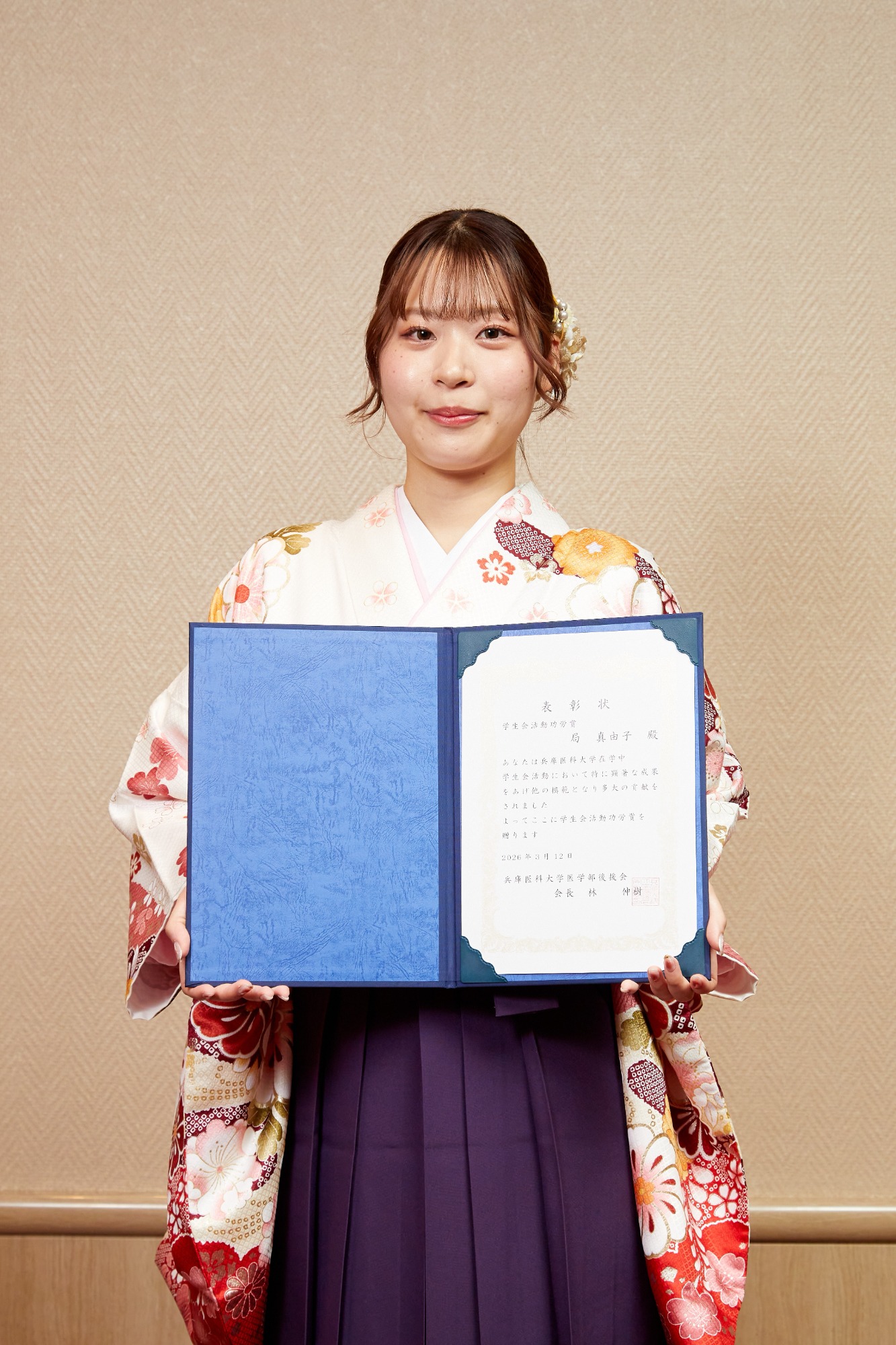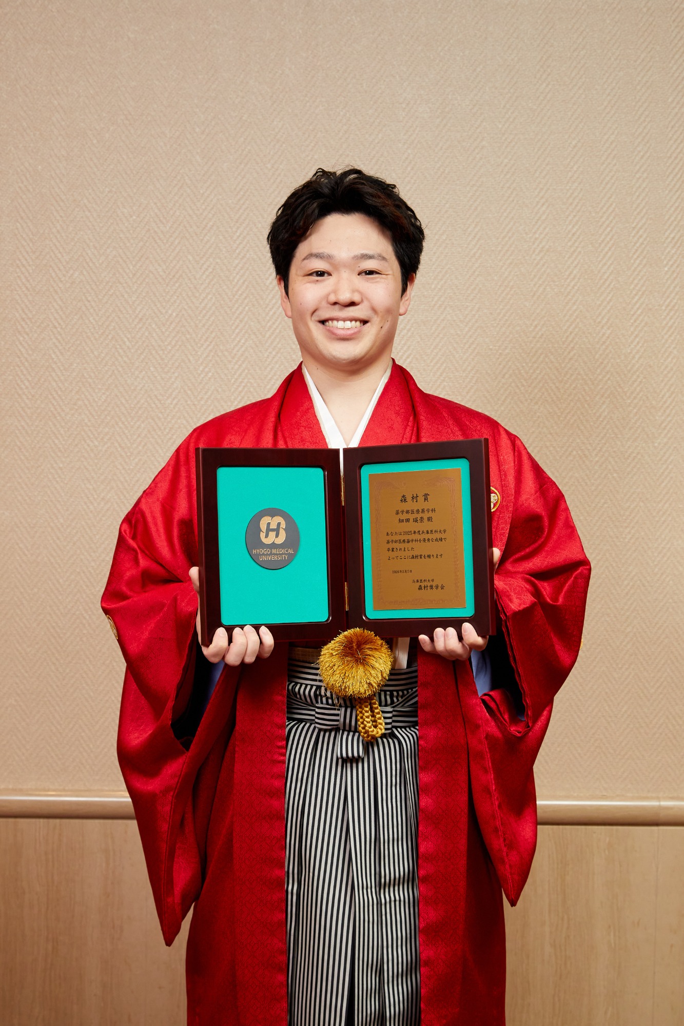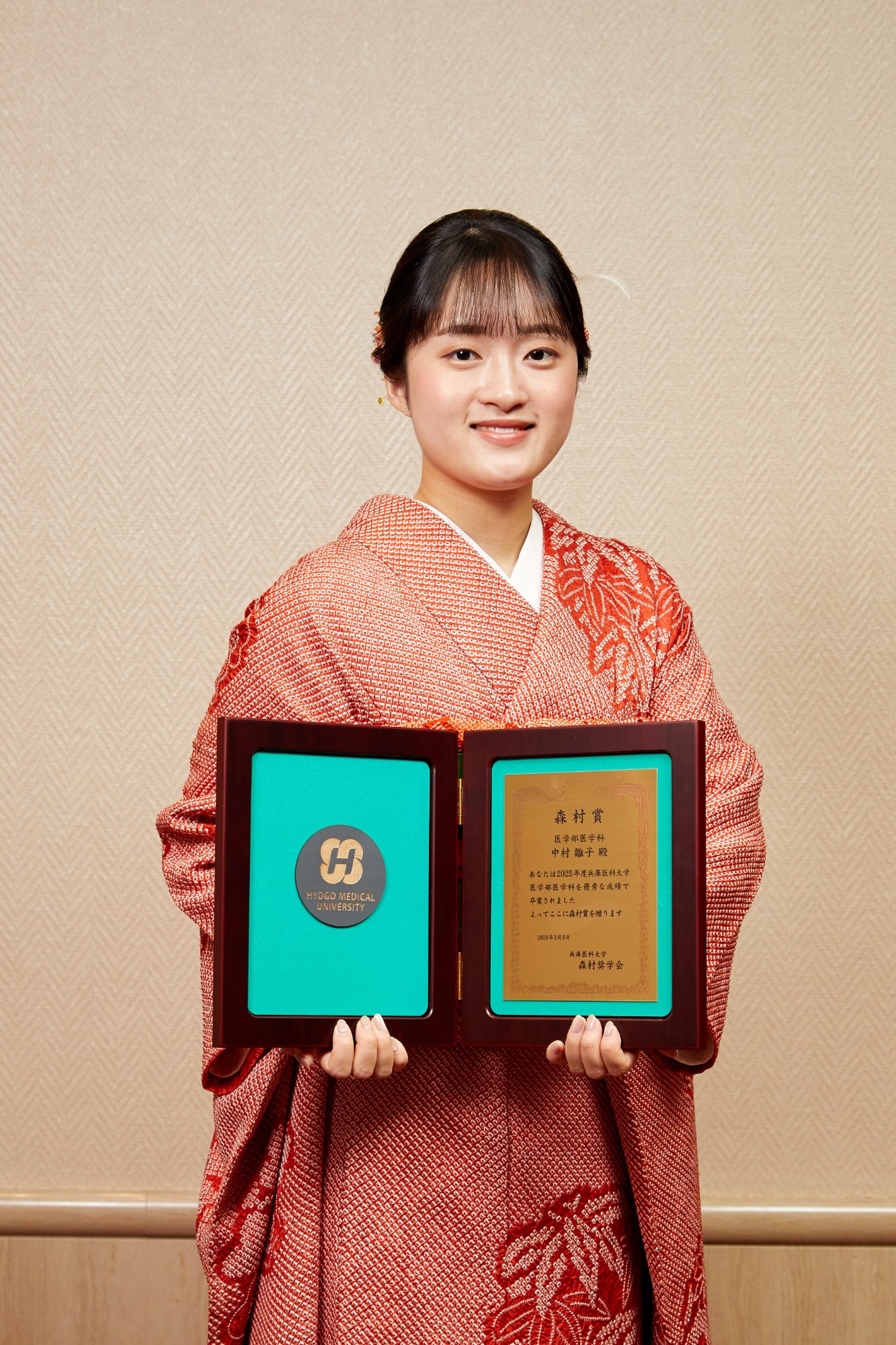 兵庫医科大学での4年間は、多くの学びと出会いに恵まれたかけがえのない時間でした。仲間と支え合いながら学びを深め、研究や学会発表に挑戦できたことは大きな経験となりました。この度このような賞をいただき、大変光栄に思います。これまで支えてくださった先生方や仲間への感謝を忘れず、学び続けながら成長していきたいです。